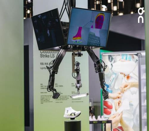 在这一产业框架下,不同品牌正在体博会上展示各自的战略路径。On昂跑通过展台设计、科技展示、产品拆解与跑者互动,系统化呈现其"专业竞速+城市跑步"的双线叙事。品牌不仅以LightSpray鞋面技术展示其技术突破,也通过机械臂喷织演示、试跑体验和限量发售的Cloudboom Strike LS,将研发能力、产品性能与跑者体验完整串联,使科技创新从产品层面延伸至全链路体验。
