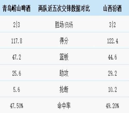 青岛崂山啤酒与山西汾酒历史上一共交手40次,青岛崂山啤酒15胜 25负。