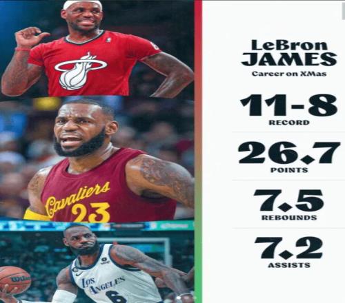 詹姆斯生涯年终大战11胜8负,场均26.7分7.5篮板7.2助攻,相信他第二十场也是大差不差。
